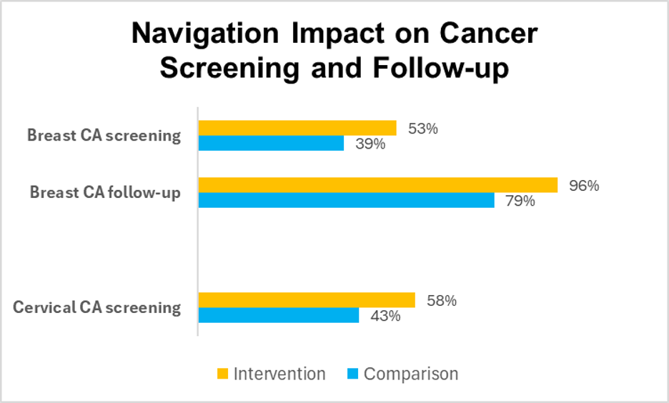 Summary: A meta-analysis showed that navigation programs increased the likelihood of preventive screening for breast and cervical cancer, as well as improved follow-up of abnormal screening results for breast cancer.
